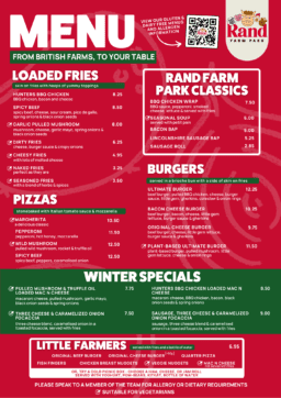 Available on weekends only, our spacious Grainstore Restaurant is the perfect place to sit down, relax, and enjoy a hearty meal with the whole family. Tuck into comforting favourites like burgers and fries, explore our much-loved classics, or try something new from our festive Christmas specials. With plenty of choice, generous portions, and a cosy atmosphere, it’s the ideal spot to refuel and make your day at Rand Farm Park even more memorable.
